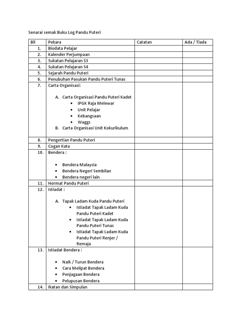 Senarai Semak Buku Log Pandu Puteri Pdf
